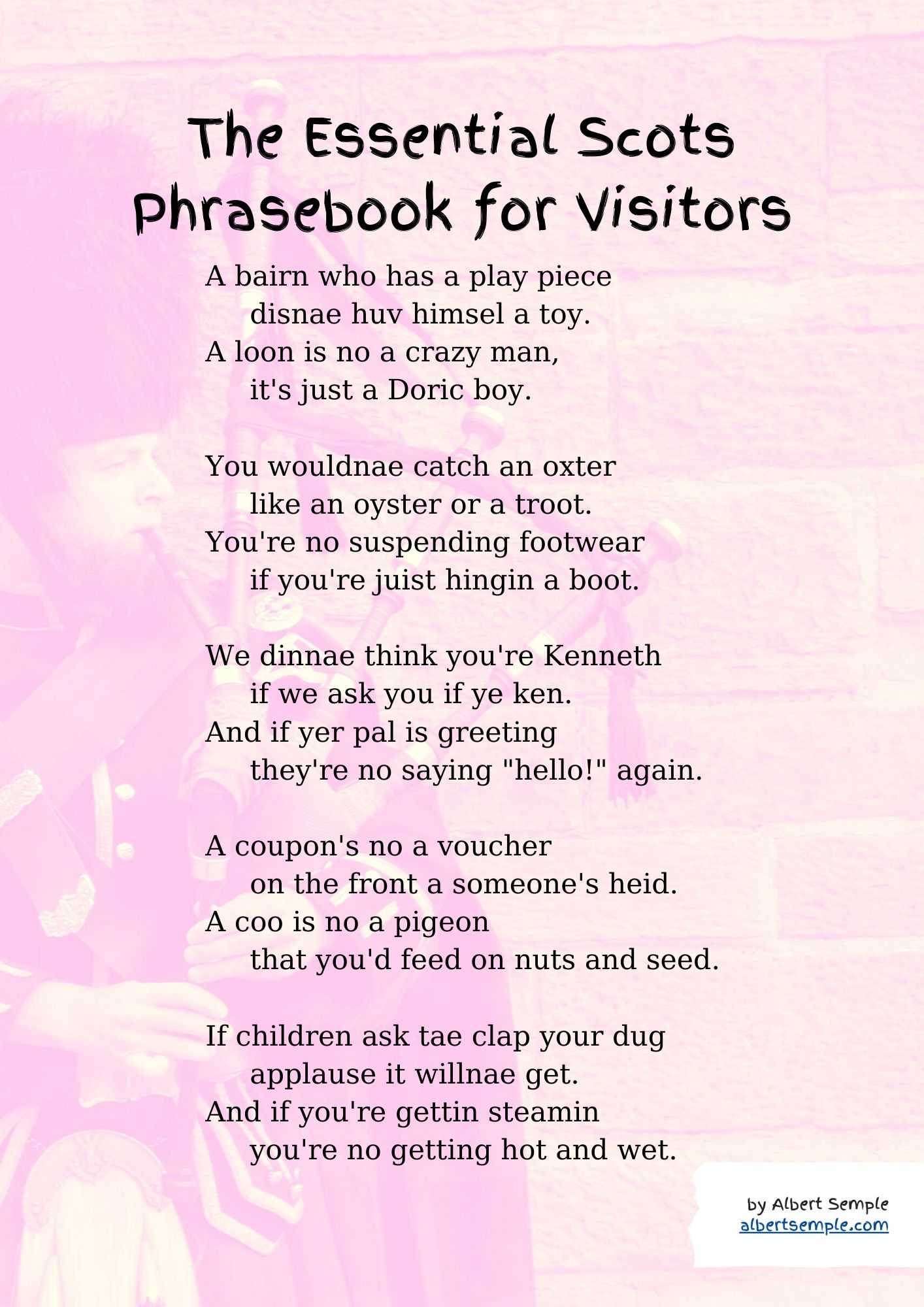 It made may think of other Scotticisms that might be confusing to visitors, and so I pulled together this not-so-handy phrasebook, which only really tells you what the Scotticisms don't mean.