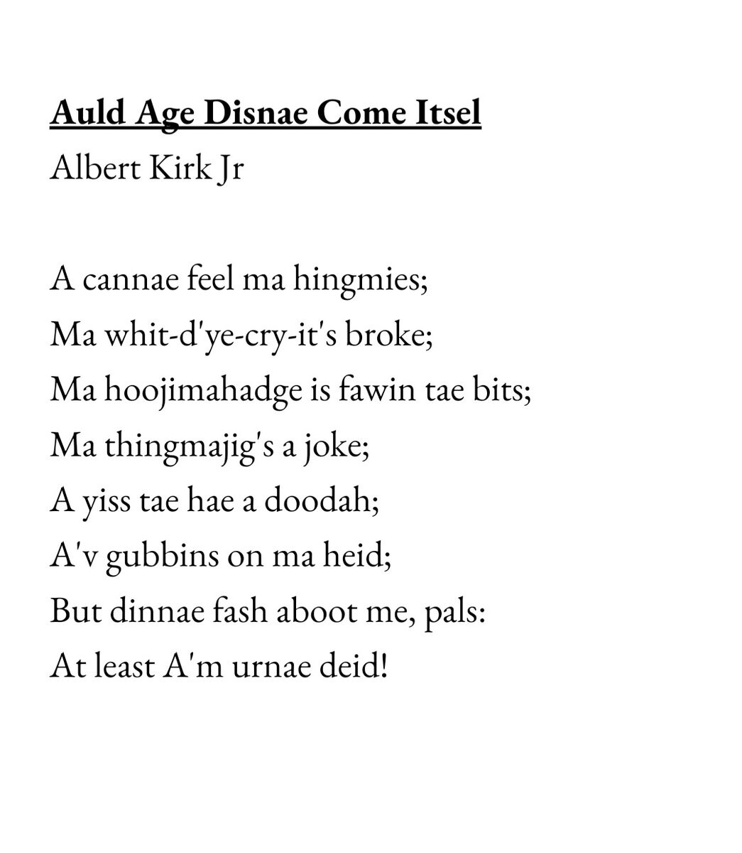 It's by Albert Kirk Jr, who is a social media contact of mine, and in this work he collates various Scots terms for miscellania into a jolly momento mori.