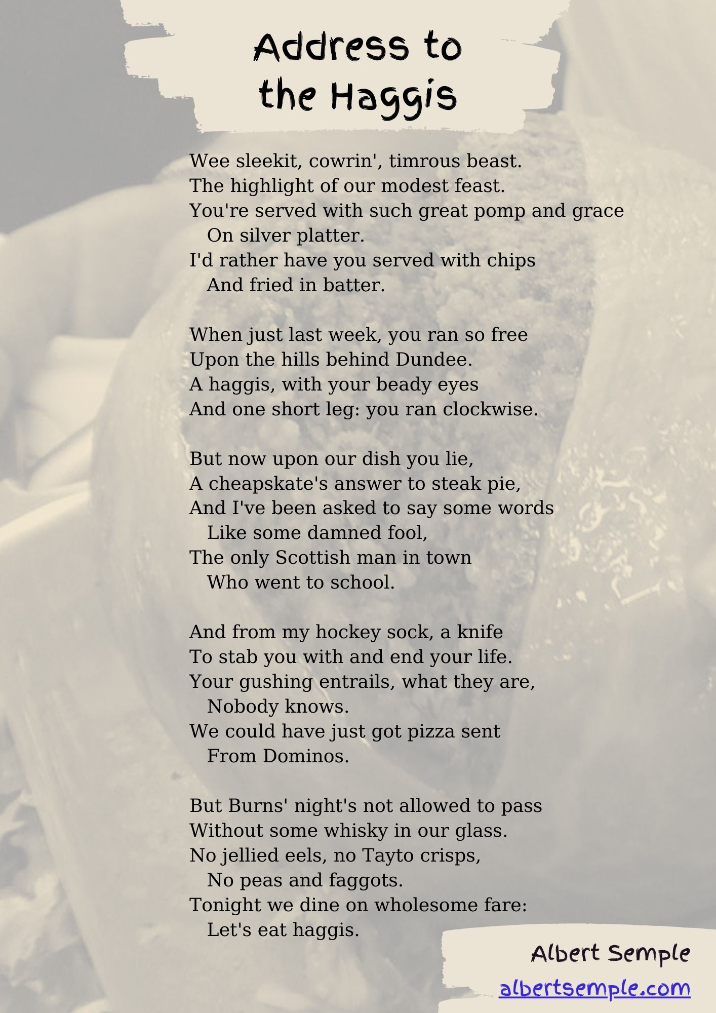Back in 2014, as a Scotsman who could read, I was invited to perform the Address to the Haggis at a Burns night in Bedfordshire.