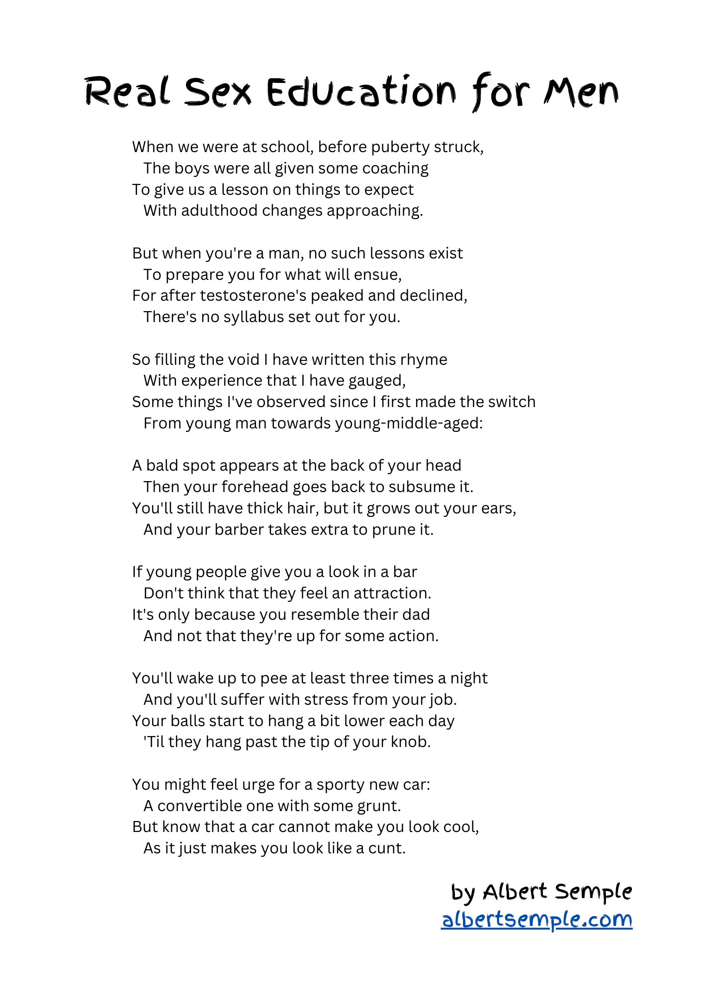 We get sex education as boys to prepare us for puberty, but there's not equivalent syllabus for the transition to middle-aged, so I've tried to close the gap with a poem