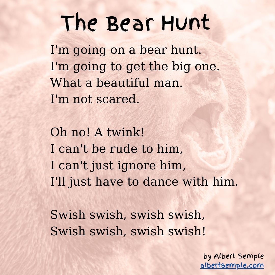 The second was my Pride poem for 2023, describing a happy encounter on a gay night out. It's a tribute to "We're Going on a Bear Hunt" by Michael Rosen.