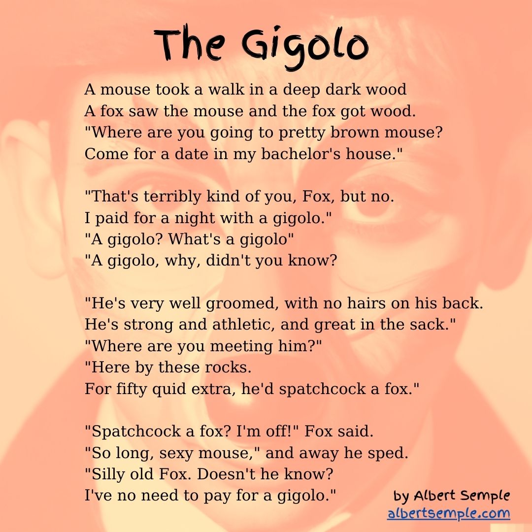 The first one was "The Gigolo", which is a homage to Julia Donaldson's "The Gruffalo", where the pretty brown mouse fabricates a Gigolo to scare off a sleazy, predatory fox.