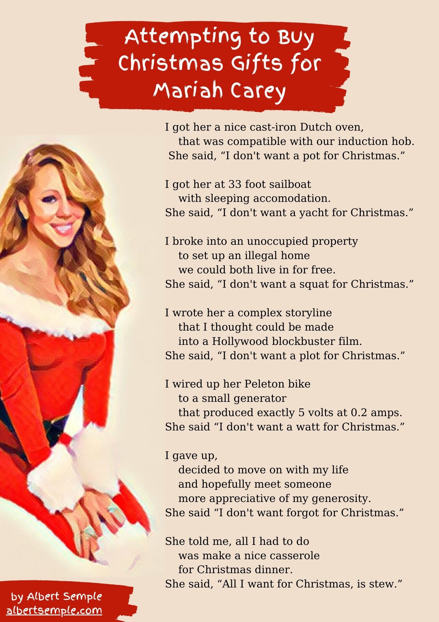 Please spare a thought this time of year for whoever has to buy Mariah Carey a Christmas present.