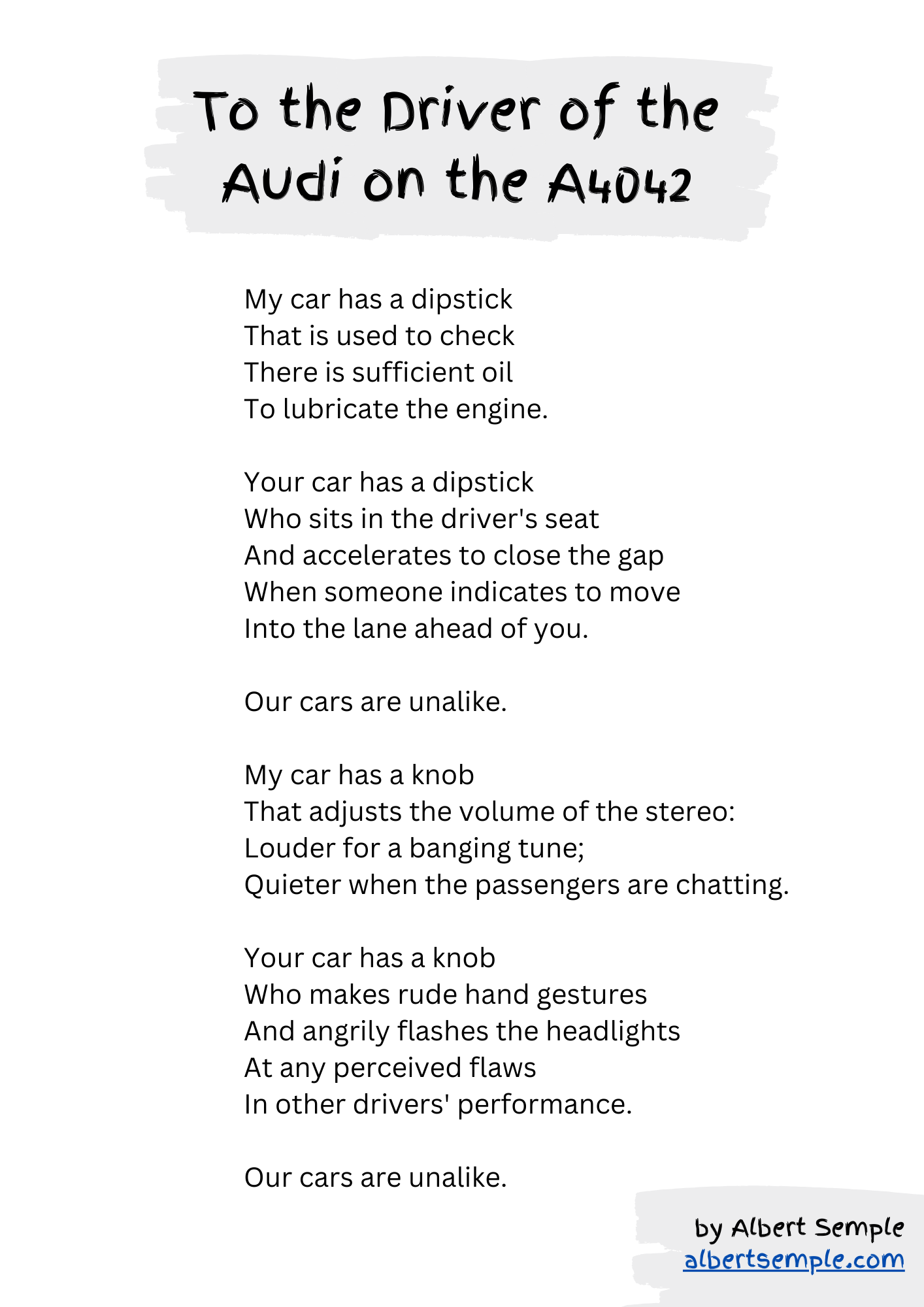 It's a work of fiction, I don't have a specific incident, vehicle or driver in mind, but most drivers will have encountered this sort of person at some point in the driving career.